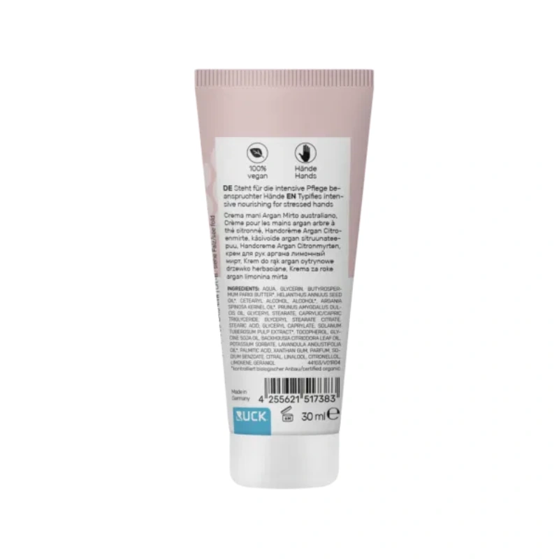 Intensive Handpflege mit Bio-Arganöl & Zitronenmyrte – zieht schnell ein und schenkt samtweiche, gepflegte Hände.
